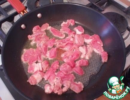 Свинину обжарить на хорошо разогретой сковороде с растительным маслом до золотистой корочки.
