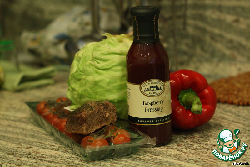 | Пикантный салатик с телятиной и малиновым соусом. |