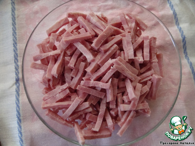 Ветчину нарезать соломкой.