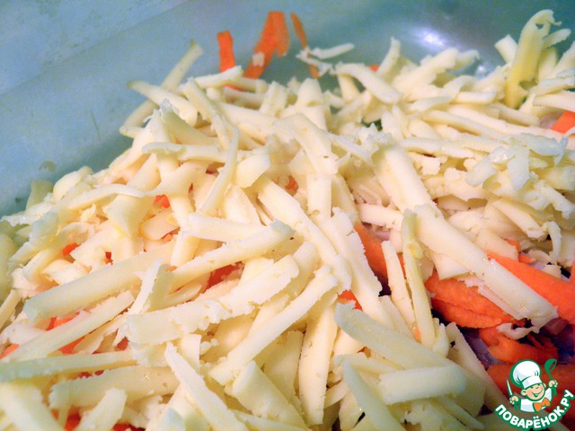 Ту же операцию проводим и с сыром - трем его на крупной терке.