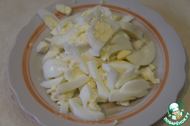 Так же нарезать 2 яйца.
