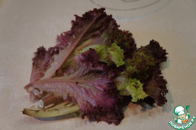 Листья салата порвать руками на кусочки.
