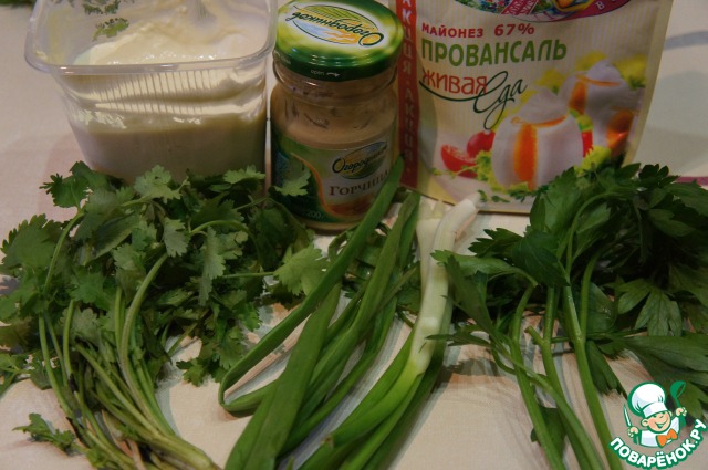 Приготовить продукты для соуса. Зелень вымыть, тщательно стряхнуть воду и слегка обсушить.