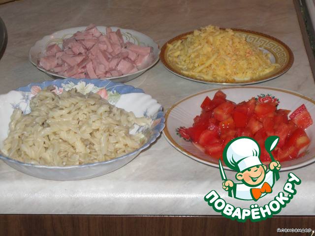 | Итальянский и без макарон, как-то было бы странно. Но салат действительно довольно вкусный. Макароны с ветчиной и помидорами приобретают мягкость и какой-то особый вкус. Попробуйте! |