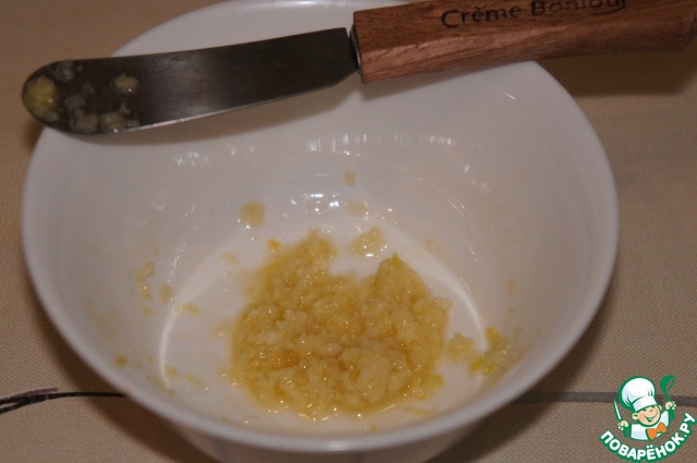 Чеснок пропустить через пресс, смешать с 1 ст. л. масла.