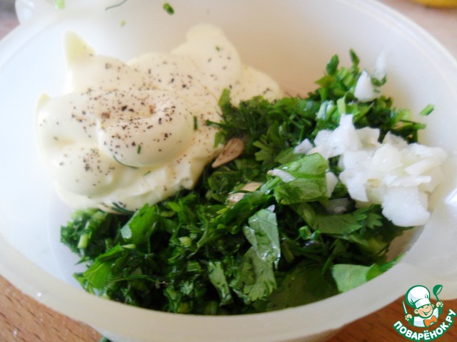 Смешайте соус. Рубленая зелень придает соусу свежесть.