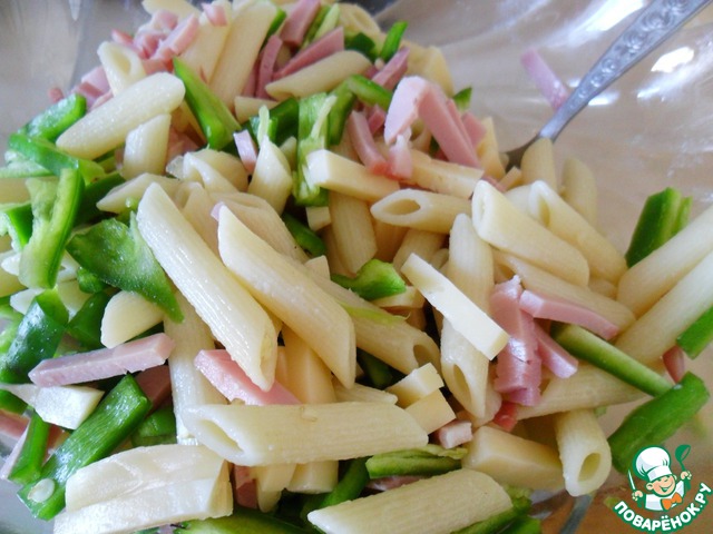 Когда макароны остынут, выложите их в салатник и перемешайте.