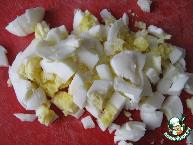 Также кубиками режем яйца.