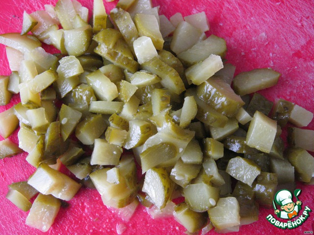 Нарезаем кубиками огурец.