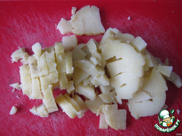 Нарезаем кубиками картофель.