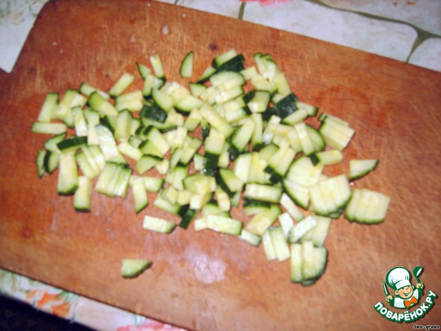Огурец также нарезать соломкой.