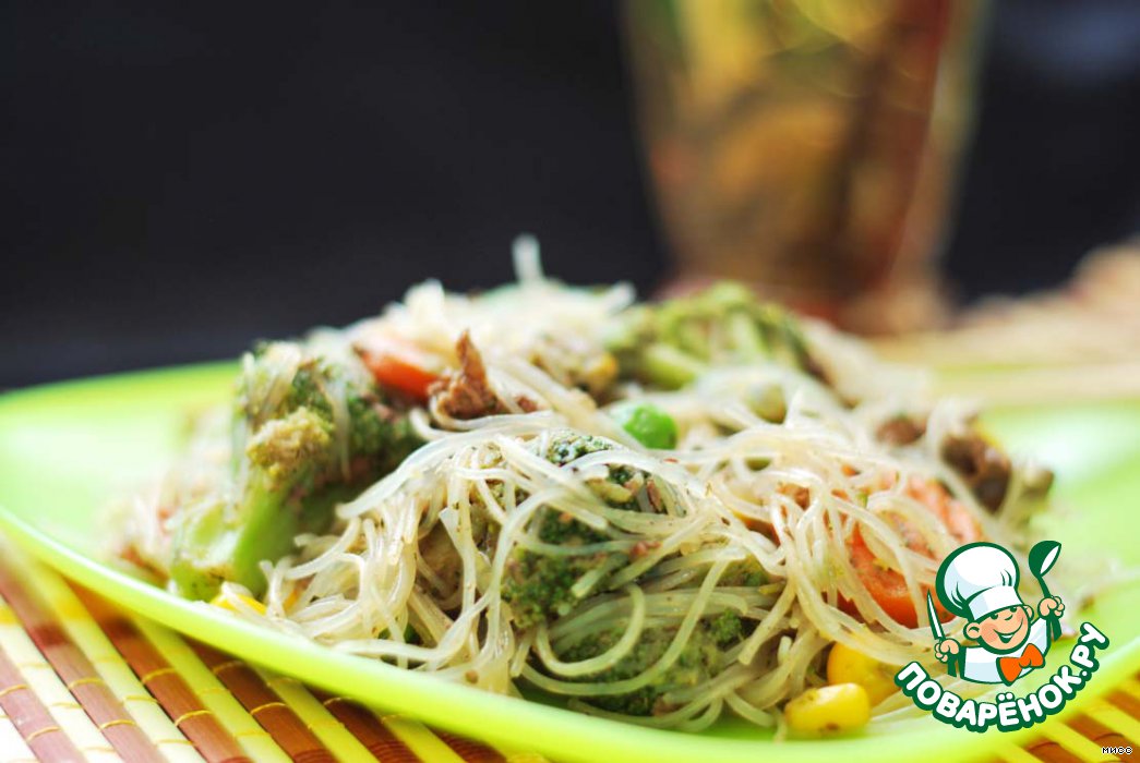 | Для любителей китайской кухни. В меру остренький оригинальный салатик. Рецепт этого блюда был размещeн на сайте в 2009 году пользователем Solomeya под названием "Салат теплый с фунчозой" и иллюстрирован мной в рамках акции "Раскраски". |