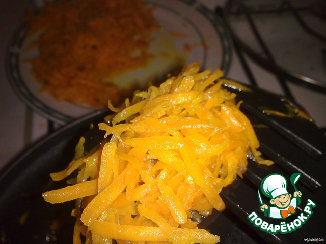 Морковь натереть на крупной терке. Обжарить(можно на том же масле что и лук) Вытащить морковь и лук шумовкой, чтобы стек лишний жир.