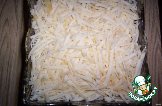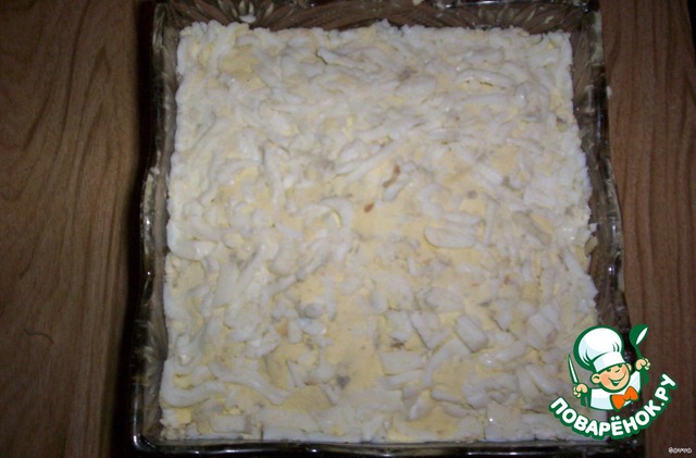 - яйца потереть на крупную терку , утрамбовать (ложкой)
