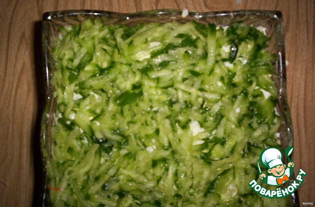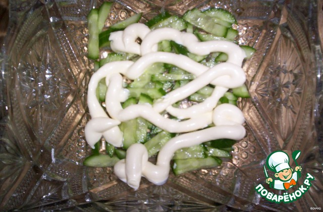 - огурец (100 гр) порезанный соломкой+чуть-чуть майонеза