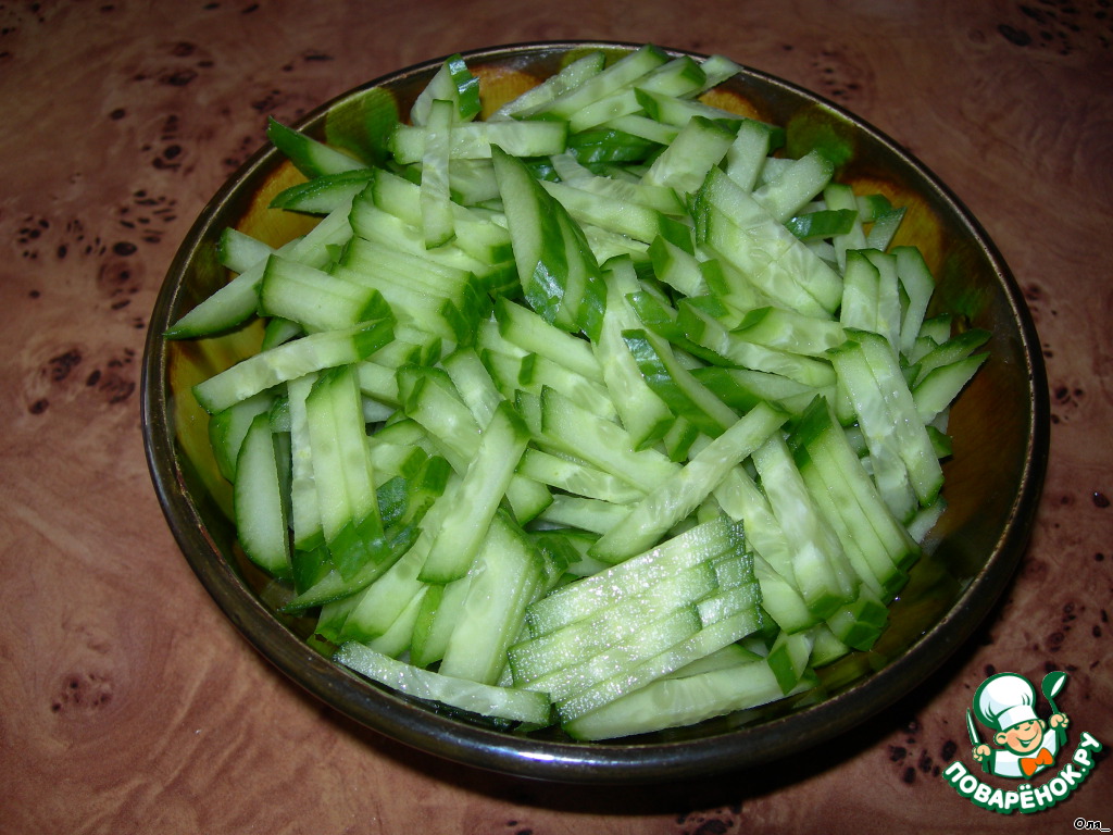 | Подобного салатика, вроде бы, на сайте нет. В свое время испытывала нехватку рецептов с языком, может и этот рецепт кому-то пригодится. Салат сытный, за счет огурчика - освежающий. Вобщем, советую. |
