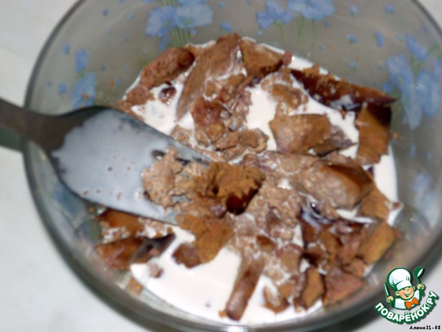 Печёнку размять и залить сливками. Если печень маленькая, можно взять 2.