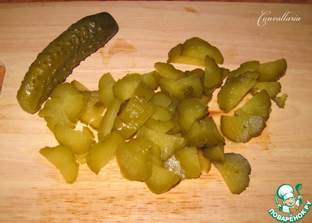 (У меня корнишоны в остро-пряном маринаде из домашних заготовок).