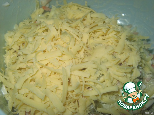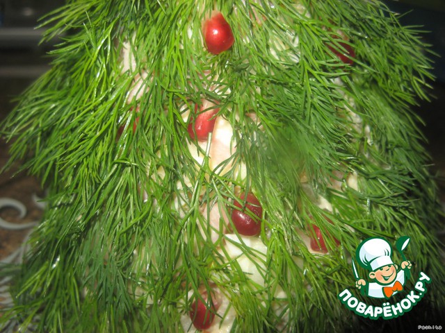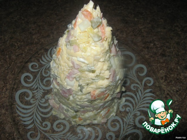 | Скоро Новый год. Предлагаю идею по украшению салата. За основу можно взять любой ваш любимый салат. Главное, чтоб он был с сыром или рисом, чтоб держал форму. |