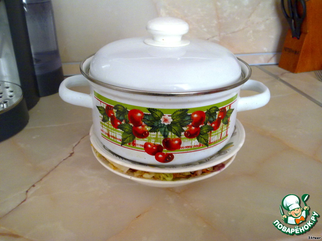 Вынуть из микроволновки, дать немного остыть и поставить под гнёт на 2-3 часа.