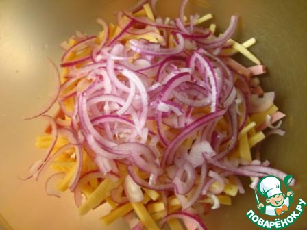 Лук нарезать тонкими полукольцами.