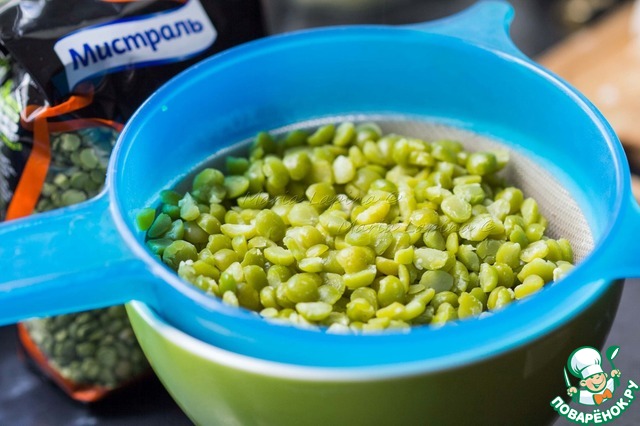 Зеленый горох от ТМ "Мистраль" отварить до готовности в подсоленной воде, не разваривать.