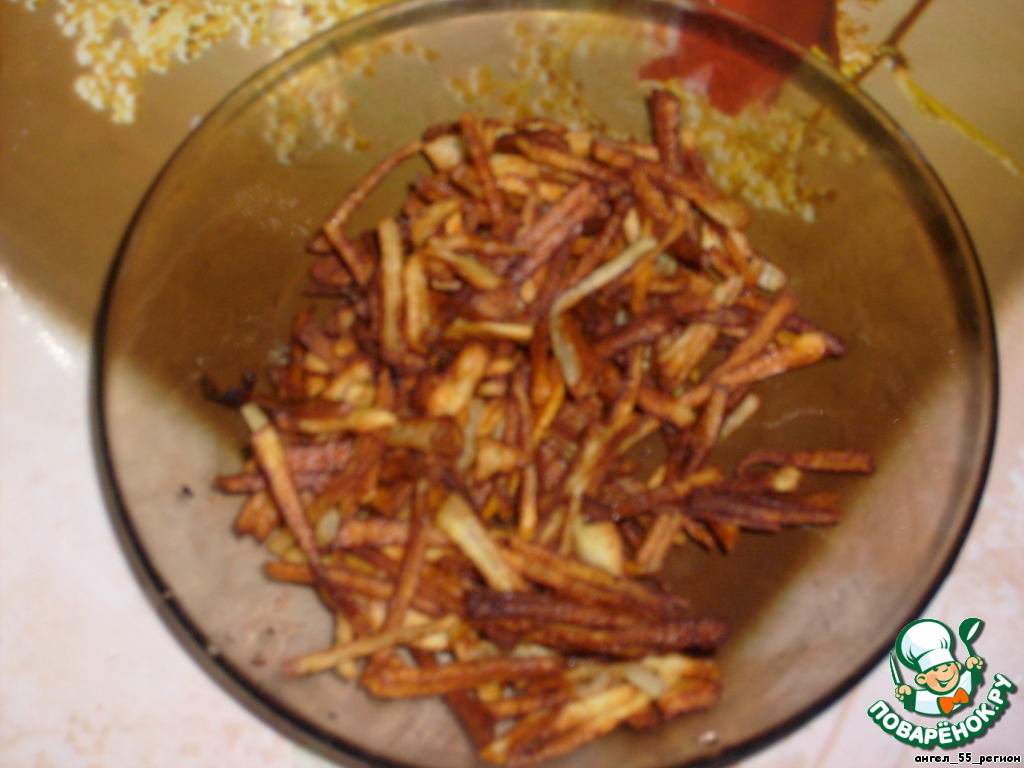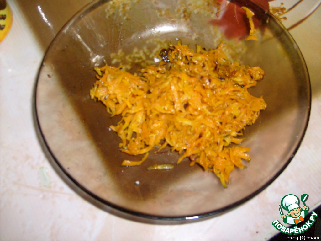 морковь натираем на крупной терке и слегка обжариваем