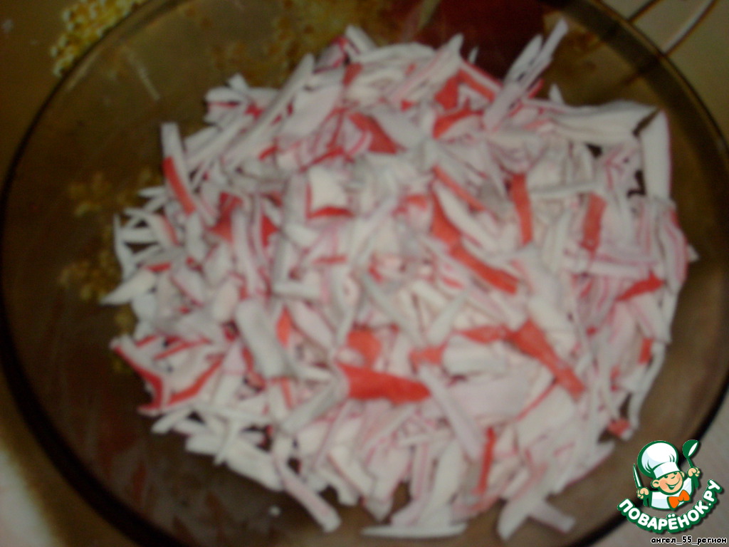 крабовое мясо шинкуем мелкой соломкой