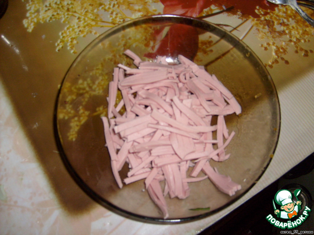 колбасу также режем соломкой
