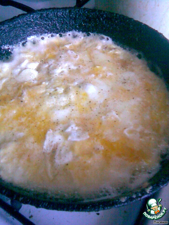 Пожарить омлет (лучше 2, чтоб не толстый был).