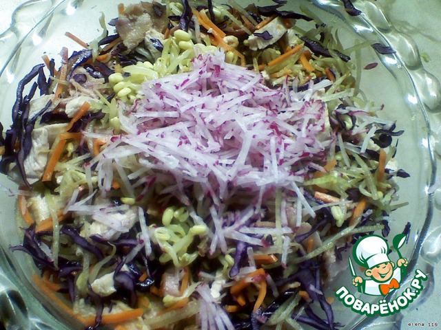 Добавить редьку к остальным составляющим салата.