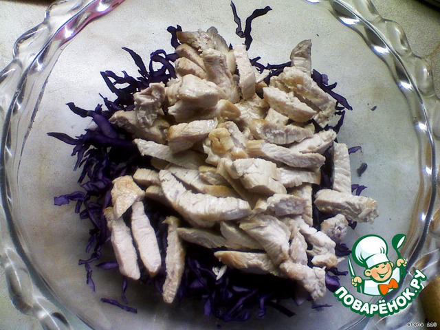 Добавить мясо к капусте.