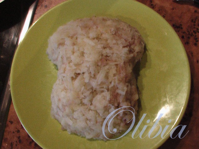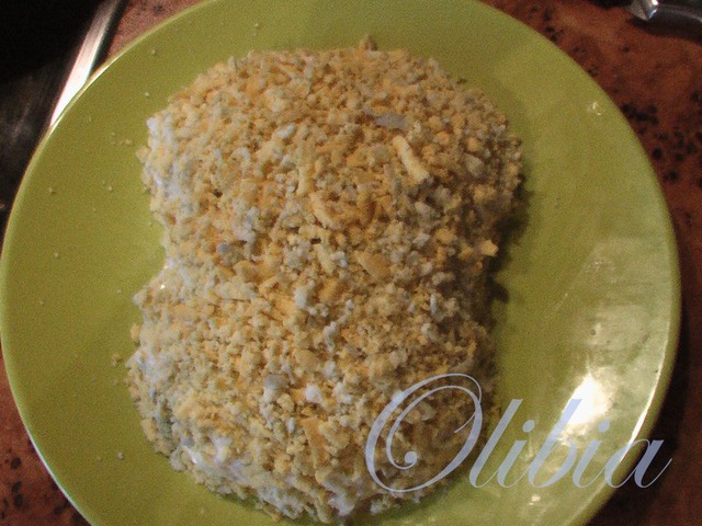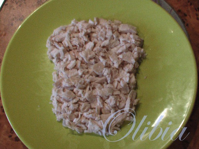 3 - тертый на крупной терке вареный картофель (слой посолить)