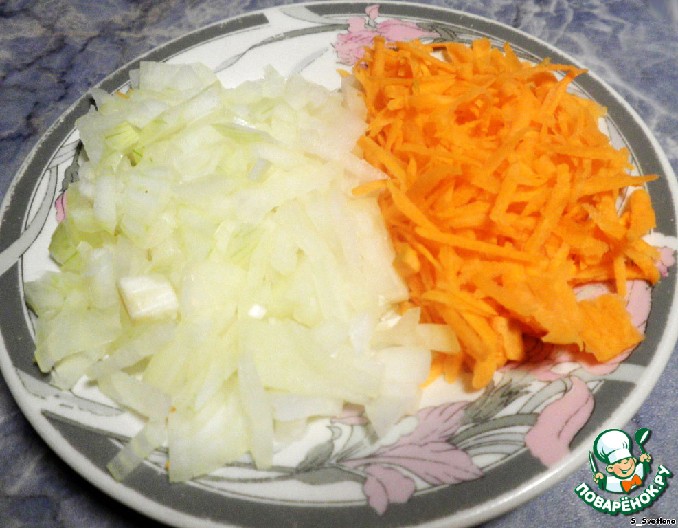 Лук, морковь и печень обжарить на растительном масле до готовности (соль и перец по вкусу).
