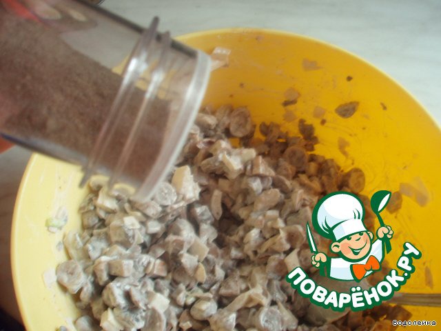Грибы почистить, порезать не очень крупно и довести до готовности. Я их просто прожарила немного и чуть подсолила.