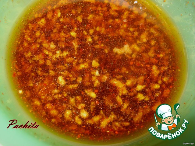 Смешать мёд, уксус, соевый соус, масло, соль, перец, измельченный чеснок.