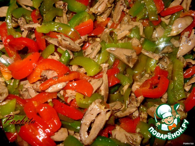 Закуска из куриных сердечек и перцев в медовом маринаде
