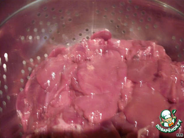 Моем печенку. Я больше люблю с куриной – она нежнее. Зато говяжью можно красиво нарезать соломкой.