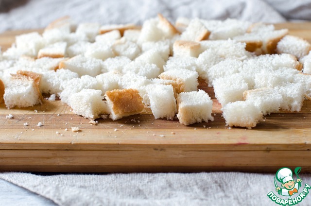 Хлеб нарезать мелкими кубиками.