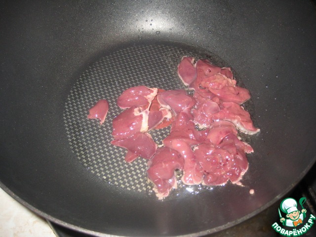 Куриную печень слегка обжарить (можно-на сухой антипригарной сковородке).