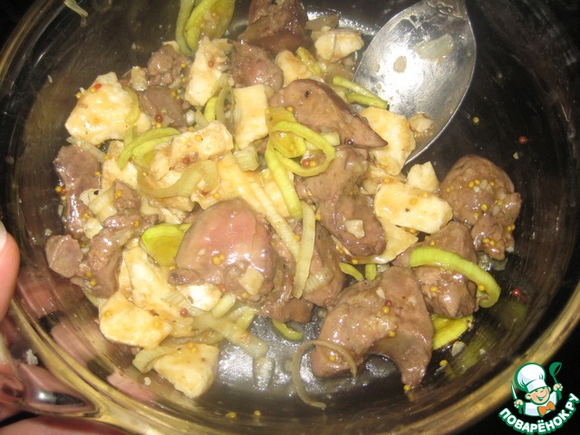 Салат с куриной печенью и перцем
