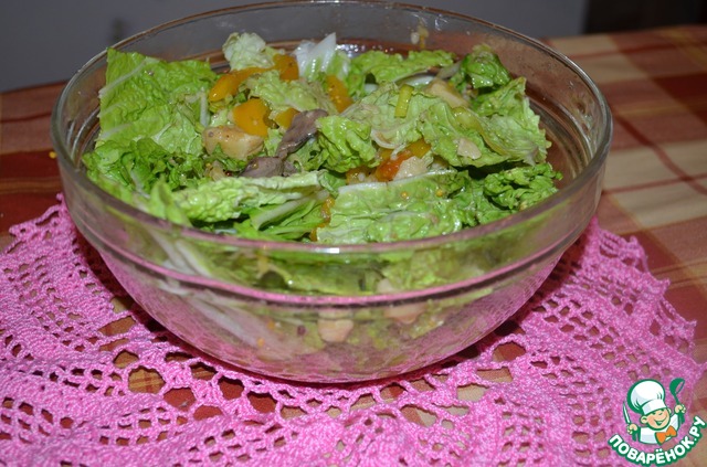 Салат можно приготовить и с савойской капустой. Листья капусты подержать несколько мин. в кипятке