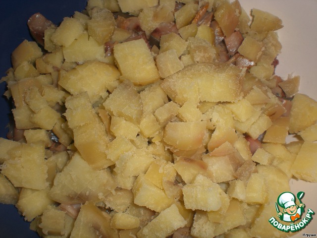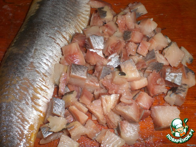 Картошку чистим и режем кубиками, по размеру такими же, как селёдка.