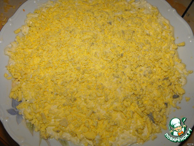 | Отличный салат и поэтому настоятельно рекомендую всем. А Вам - для получения горы комплиментов от ваших едоков. Нежнейшая консистенция, и прекрасно сбалансированный вкус не оставляет ему никаких шансов остаться несъеденным. Не могу показать, как получилось внутри, так как готовила на ДР, не было времени фотографировать. Приятного аппетита!!! |