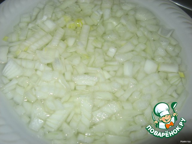 Заранее лук очистить, нарезать кубиками ,замариновать .