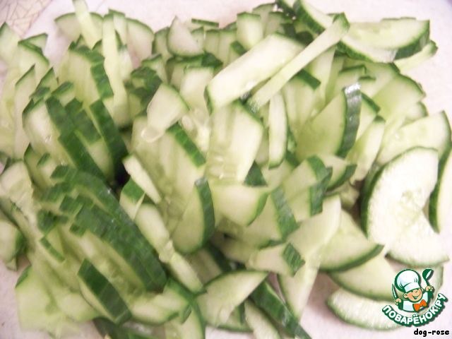 Огурец режем не крупно, но и не очень мелко (впрочем, это как кому нравится).