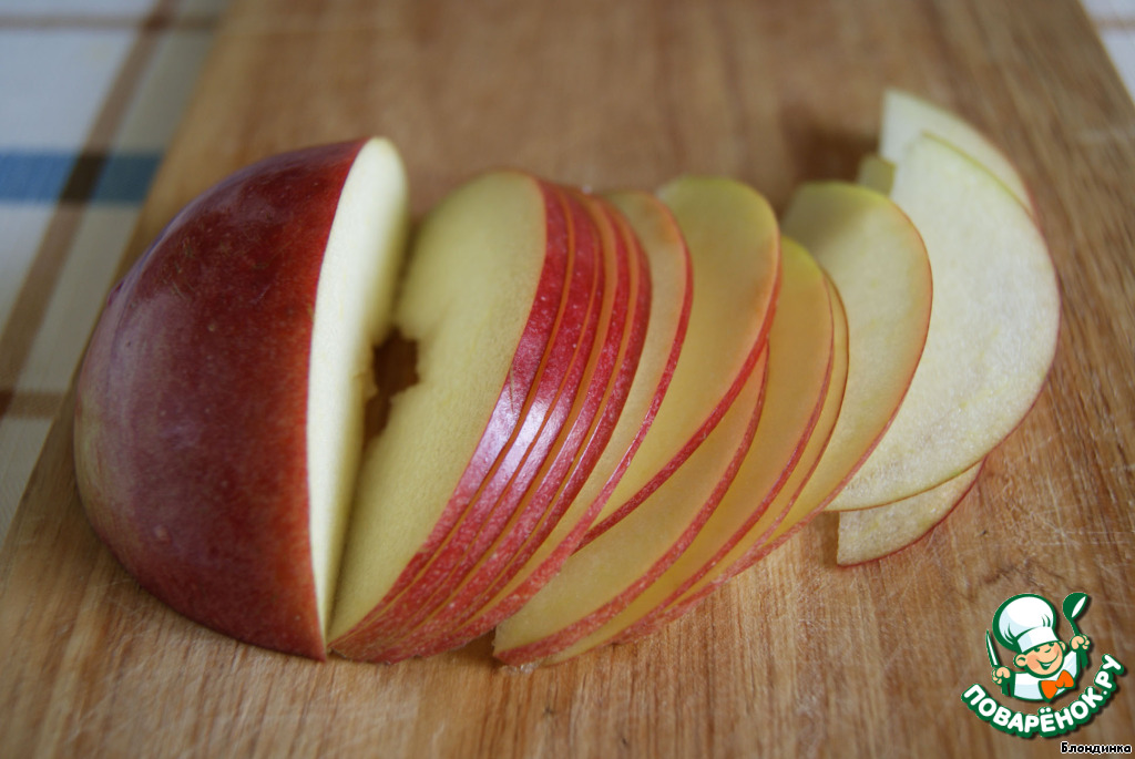 Из яблока удаляем сердцевину и нарезаем тоненькими ломтиками