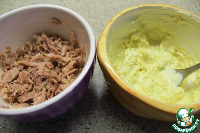 Тщательно перемешала все составные соуса, рыбу размяла вилкой.