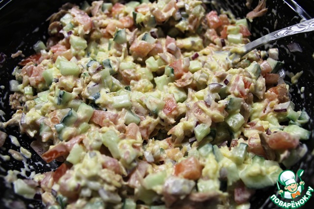 Салат рыбный с сырным соусом