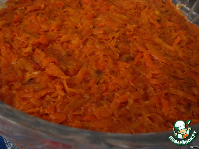 Морковку почистим, натрём на крупной тёрке и потушим на масле в сковородке под крышкой до готовности.